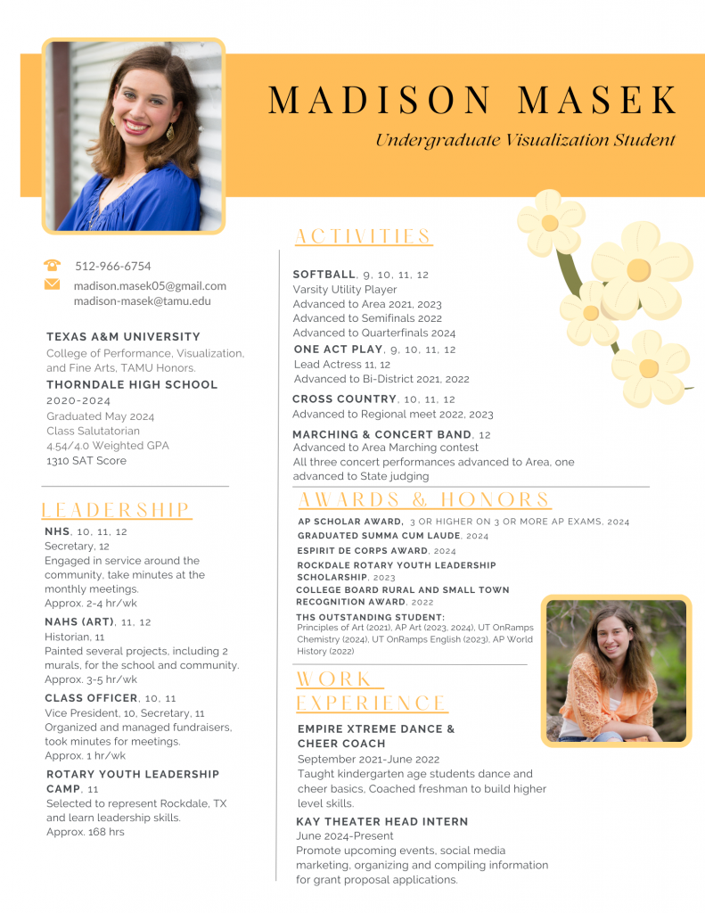 Once again, howdy! My name is Madison Masek and like I mentioned, I am a visualization student at Texas A&M University. I come from a rural town, so I know the value of hard work and dedication. These are two things which I believe are incredibly valuable when it comes to both animation and storytelling. Neither happens overnight, or alone, which is another reason why I am so glad that I come from a small school and a big family. I have had to learn how to work with others, a priceless skill to have.